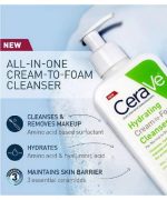 پاککننده آبرسان صورت CeraVe مدل Hydrating Cream-to-foam توسط متخصصان پوست بهگونهای فرموله شده است تا علاوه بر اینکه به سد دفاعی پوست آسیب نرساند، باعث ترمیم آن نیز شود. سد دفاعی پوست خارجیترین قسمت پوست است که از کلسترول، سرامید و اسیدهای چرب تشکیل شده است. این سد مانع ازبینرفتن رطوبت و چربی طبیعی سطح پوست میشود. پاککننده ی آبرسان سراوی محافظت از سد دفاعی پوست را با تکنولوژی MVE انجام میدهد. این فناوری سرامیدها را در کپسولهایی محصور میکند، سپس در طول مدت روز اقدام به آزادسازی آنها در سطح پوست میکند؛ بنابراین پوست در طی روز لطیف، مرطوب و شاداب میماند. این شوینده قبل از اینکه شروع به کف کردن با آب روی پوست کند، به عنوان یک کرم شروع می شود و به طور موثر آلودگی و آرایش را بدون از بین بردن رطوبت طبیعی پوست یا ایجاد احساس کشیدگی و خشکی در آن، پاک می کند.