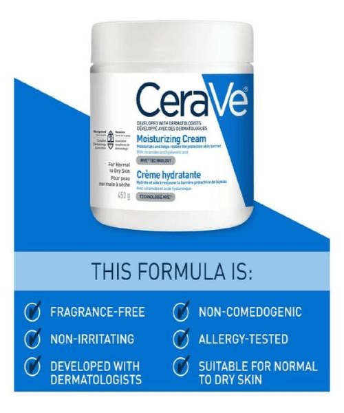 این کرم مغذی پوست را به صورت عمقی و برای مدت طولانی آبرسانی کرده و مانند یک سد دفاعی از پوست در برابر عوامل محیطی محافظت می‌کند. فرمول منحصربه‌فرد و غنی این کرم مرطوب کننده دارای 3 سرامید ضروری بوده که موجب ترمیم و تقویت سد پوست می‌شود. کرم مرطوب کننده پوست خشک سراوی CERAVE، بافتی کرمی دارد که به سرعت جذب پوست می‌‍شود و فاقد چربی است. این محصول با حفظ آب و چربی طبیعی پوست از خشکی آن جلوگیری خواهد کرد.